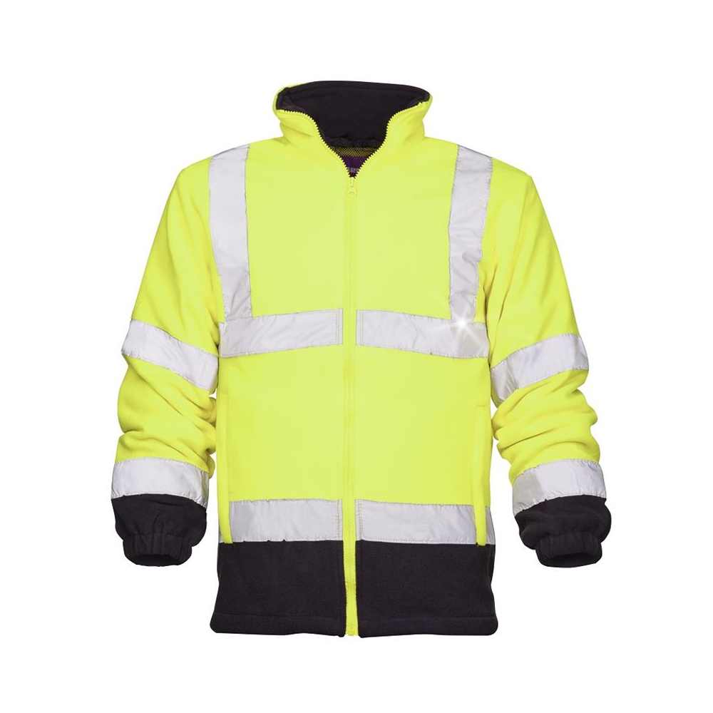 Bluza fleece reflectorizanta REF401 galben. Conceputa special pentru a oferi confort, caldura, vizibilitate si siguranta in orice conditii. Are 3 buzunare pentru depozitare, fermoar dublu si mansete elastice. Material: fleece 100% poliester, de 300 de grame/ mp. Captuseala din plasa 100% poliester de 60 g/mp. Manecile: 100% tafta de poliester de 60 g/mp. Corespunde standardului EN 20471. Culori: galben si portocaliu. Marimi: de la M la 3XL.