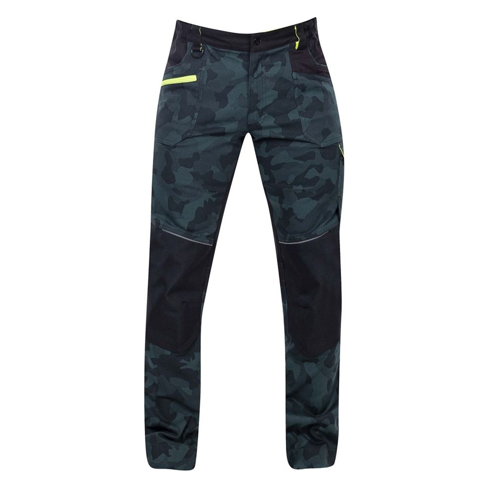 Zona genunchilor este întărită cu material Oxford durabil cu tratament hidrofug si buzunar pentru genunchiere. Pantalonii au talie elastica si o buclă dublă ascunsă în spate pentru o potrivire confortabilă a centurii, bandă internă anti-alunecare și un inel în D pentru prinderea unei carabiniere. Au buzunare multiple, practice si cusatura tripla in partile supra-solicitate. Tivul din partea de jos este întărit cu material Oxford, rezistent la abraziune.