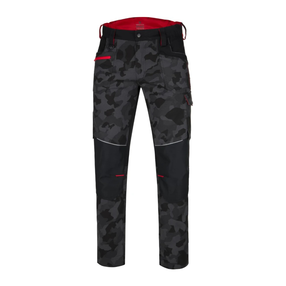 Zona genunchilor este întărită cu material Oxford durabil cu tratament hidrofug si buzunar pentru genunchiere. Pantalonii au talie elastica si o buclă dublă ascunsă în spate pentru o potrivire confortabilă a centurii, bandă internă anti-alunecare și un inel în D pentru prinderea unei carabiniere. Au buzunare multiple, practice si cusatura tripla in partile supra-solicitate. Tivul din partea de jos este întărit cu material Oxford, rezistent la abraziune.